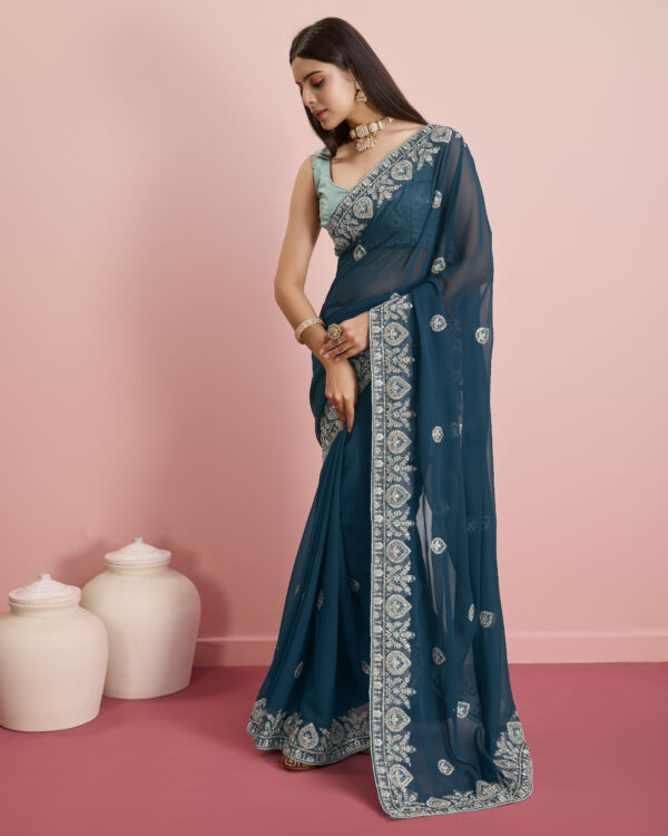 • Premium Soft Georgette Fabric: Crafted from high-quality soft georgette, this saree offers a lightweight, breathable feel, perfect for all-day comfort.